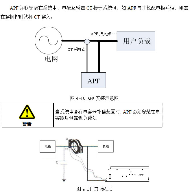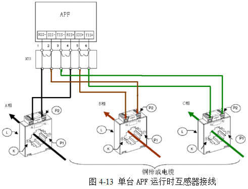 【注】电流互感器接在系统电源侧,测量APF与负荷的总电流,APF做闭环补偿。